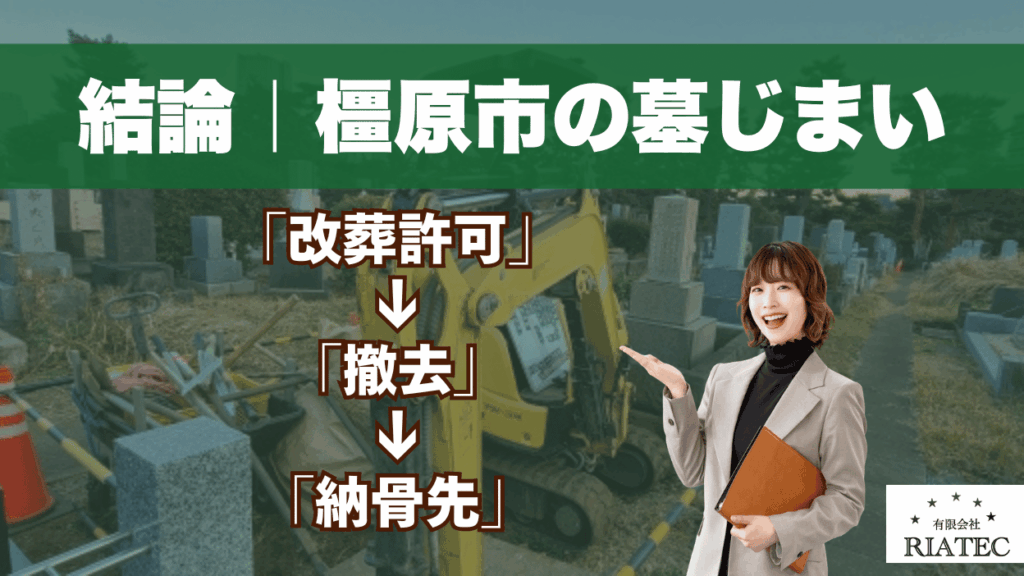 結論|橿原市の墓じまいは「改葬許可」→「撤去」→「納骨先」の順で進める