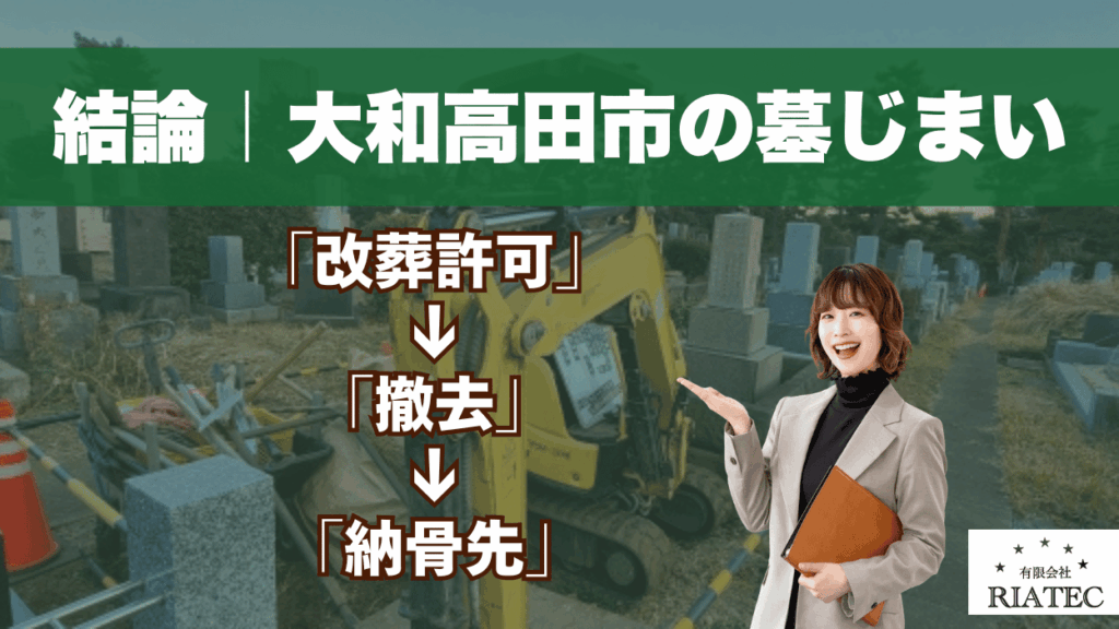 結論|大和高田市の墓じまいは「改葬許可」→「撤去」→「納骨先」の順で進める