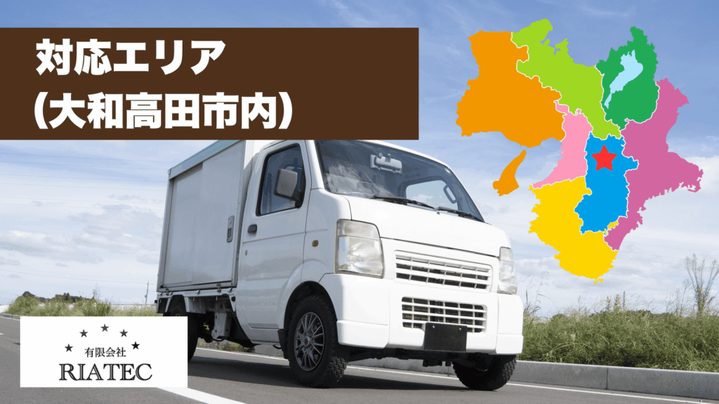 リアテックは大和高田市内全域の遺品整理に対応しています。市内でのご依頼はもちろん、遠方にお住まいで「立ち会いが難しい」「何度も帰省できない」といったご家族からのご相談も承ります。